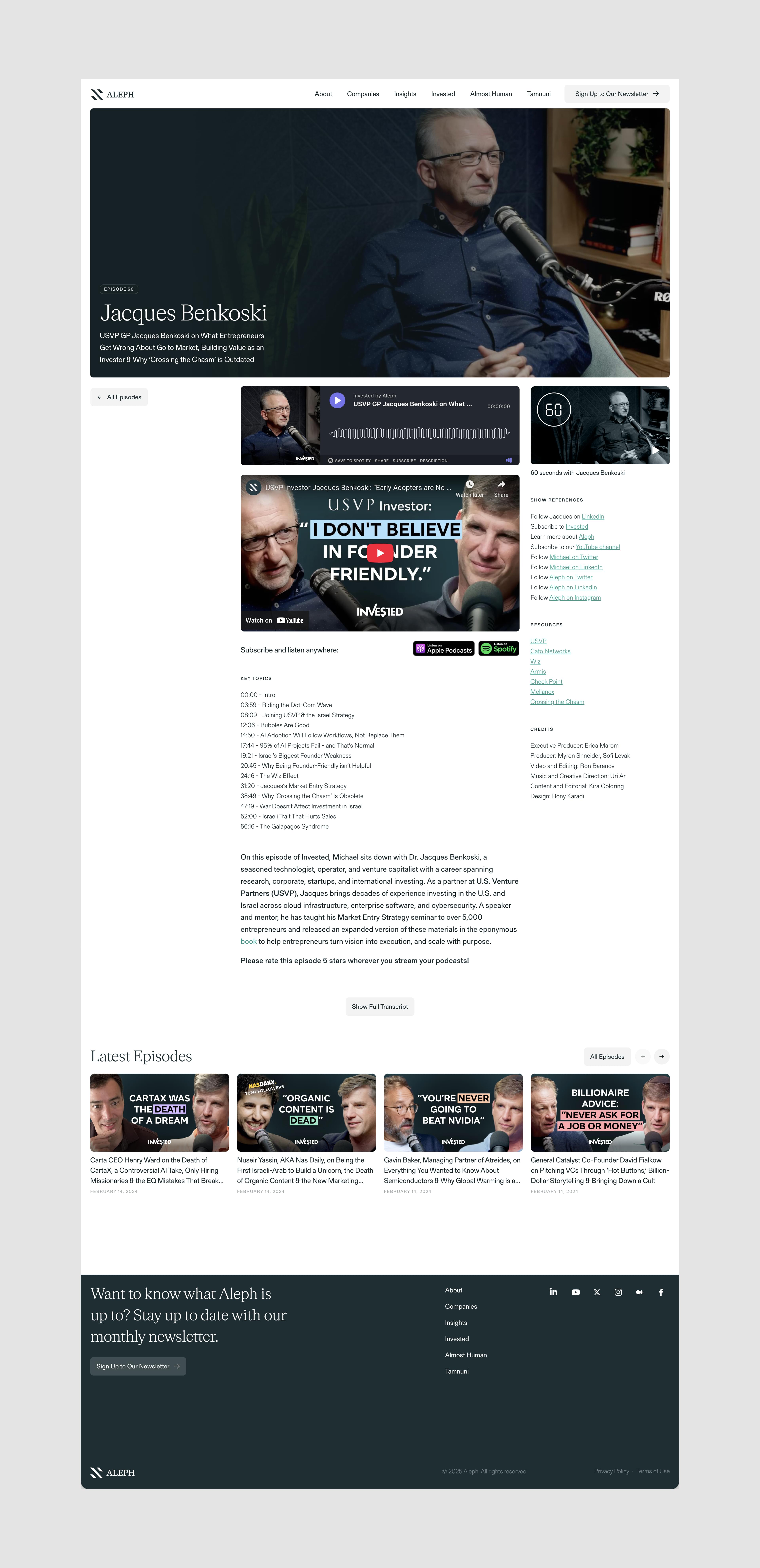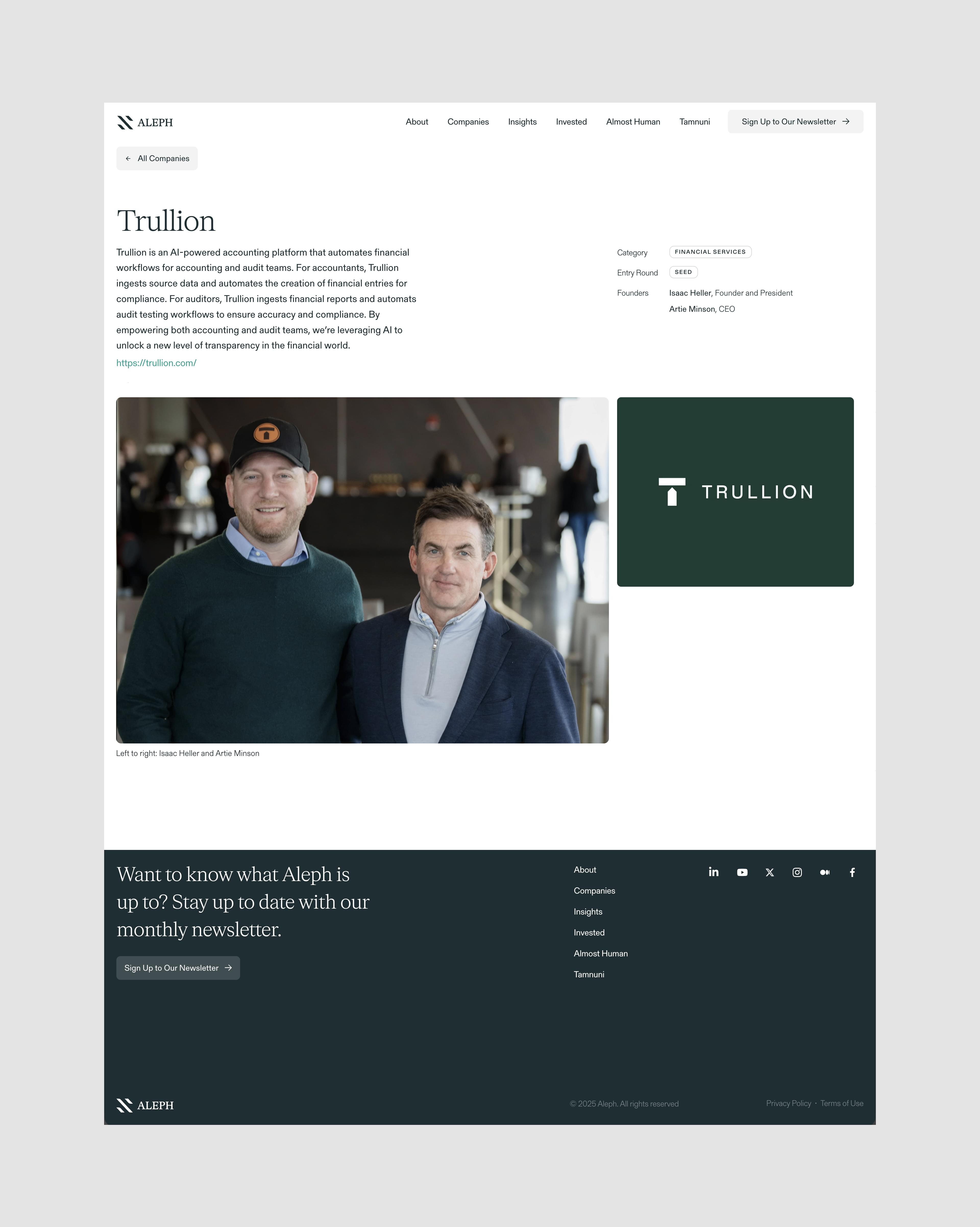 The goal was to clearly present a diverse portfolio of around 60 companies within a single, unifying system, and to create a hub for all of Aleph’s in-house content, including “Invested” podcast, as well as the services offered to portfolio companies.